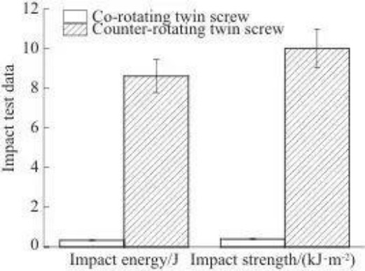 La absorción de energía de impacto y la resistencia al impacto de las estrías del material extruidas mediante la extrusión de contratornillo son ligeramente mayores que las extruidas mediante la extrusión de cotornillo.